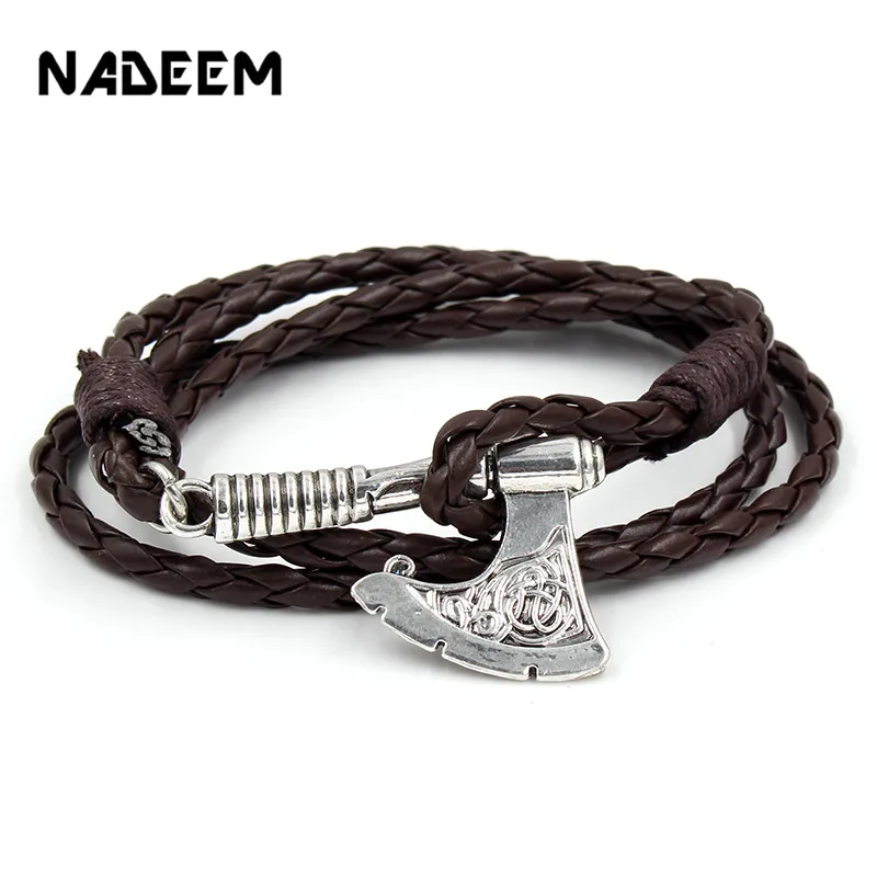 New 2019 Wholesale Fashion Punk Axe Charm Wrap Leather Bracelet Slavic Perun Women Multilayers Leather