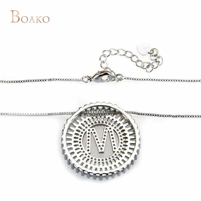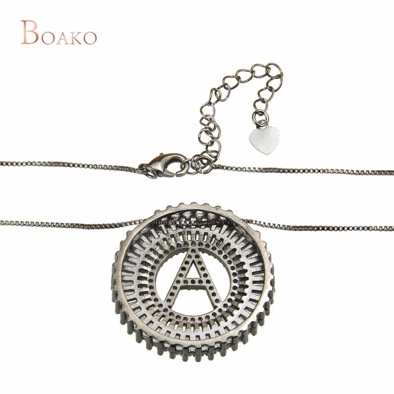 Promo 26 Letter Initial Necklace for Women Silver Rose Gold Black Color Disc Cubic Zirconia Necklaces Alp