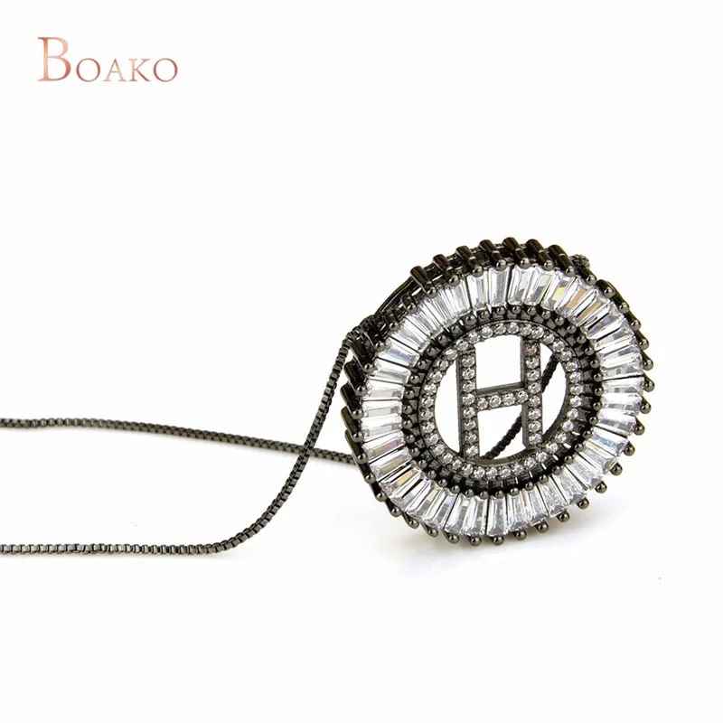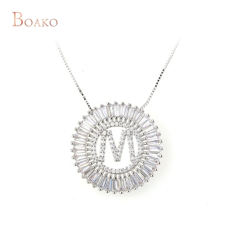 Best 26 Letter Initial Necklace for Women Silver Rose Gold Black Color Disc Cubic Zirconia Necklaces Alp