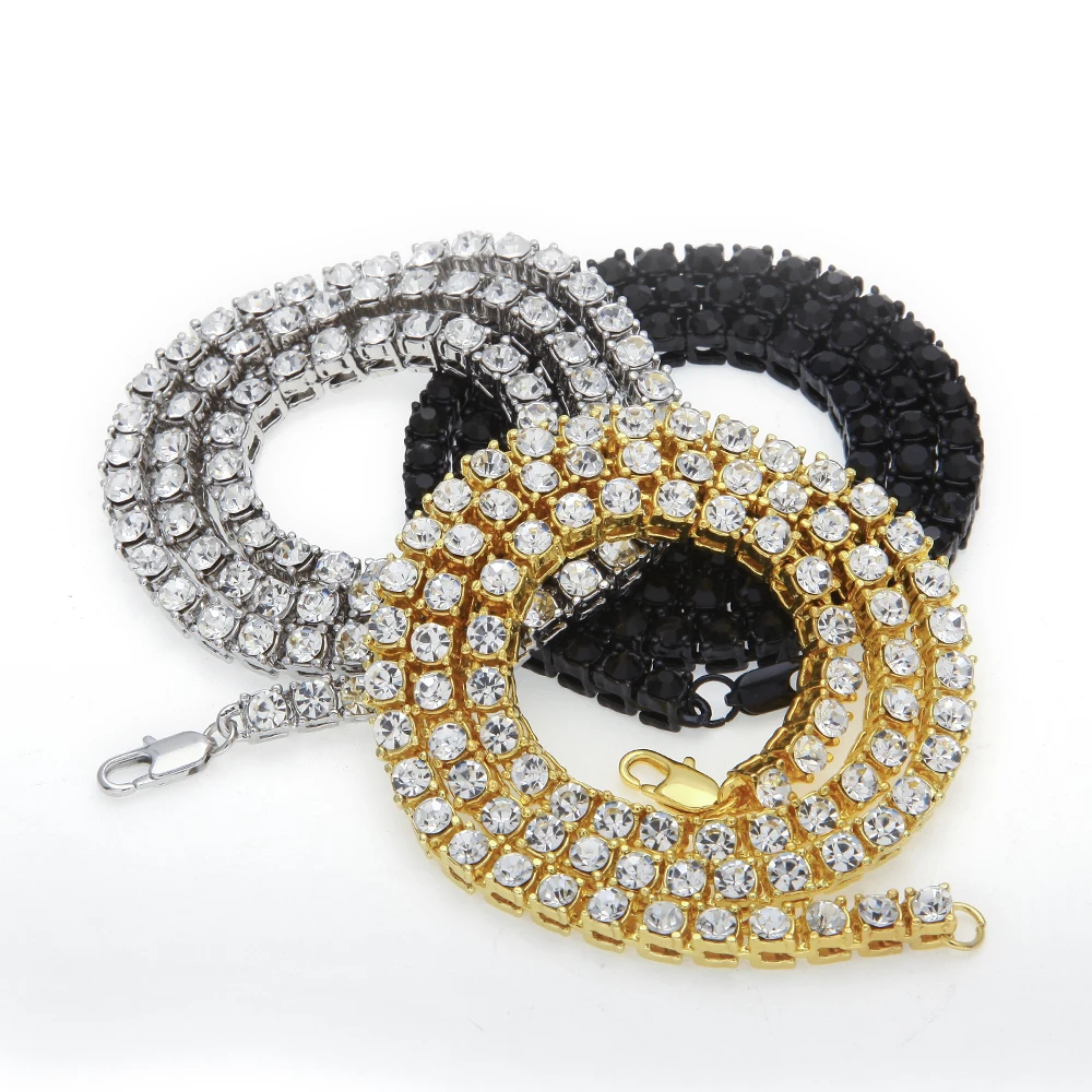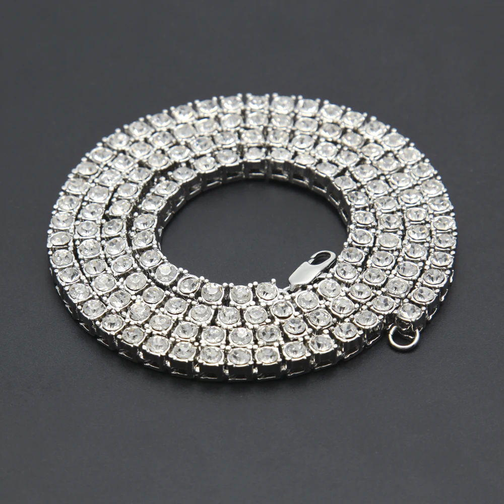 New Uwin Men's Hip Hop Bling Bling Iced Out Tennis Chains 1 Row Necklaces Luxury Brand Silver/Gold Colo