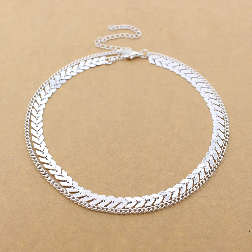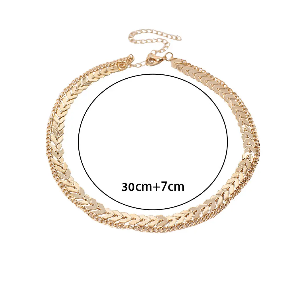New 2019 Gold Color metal Two Layer Choker Necklaces Fishbone Chain simple jewelry collana Kolye Bijoux