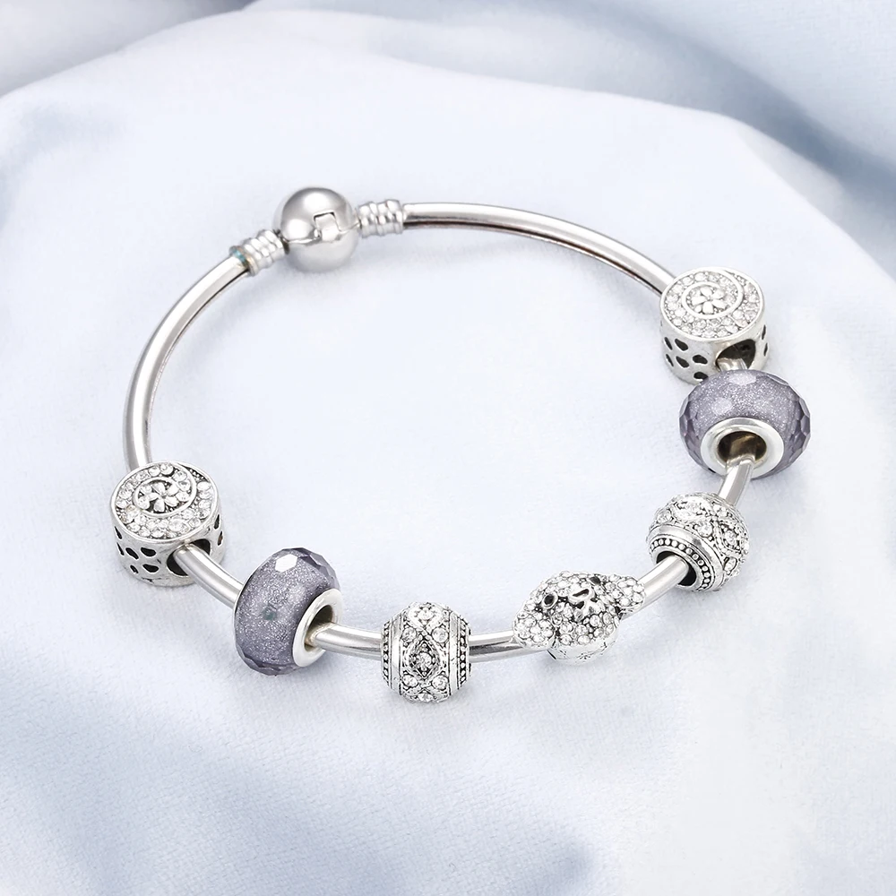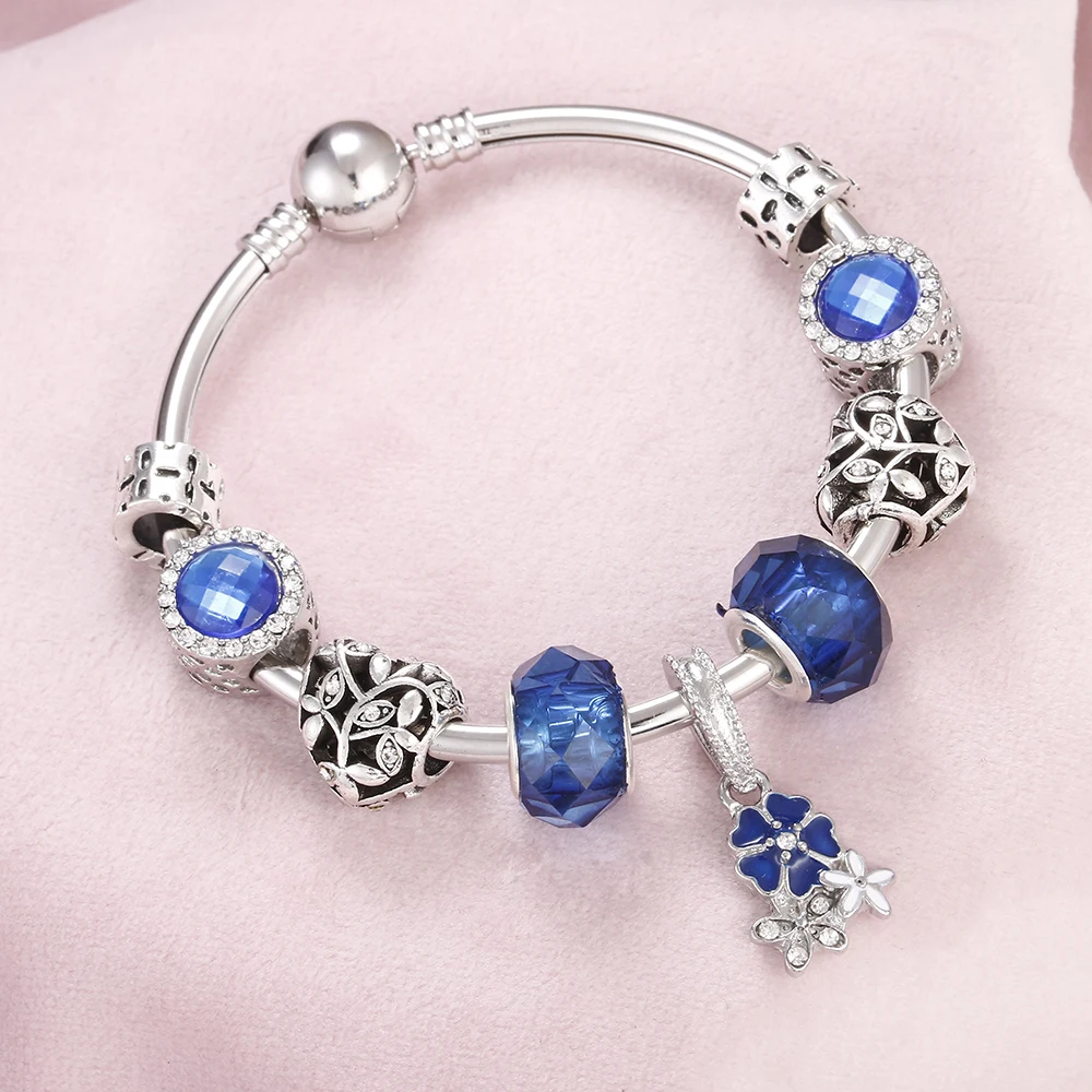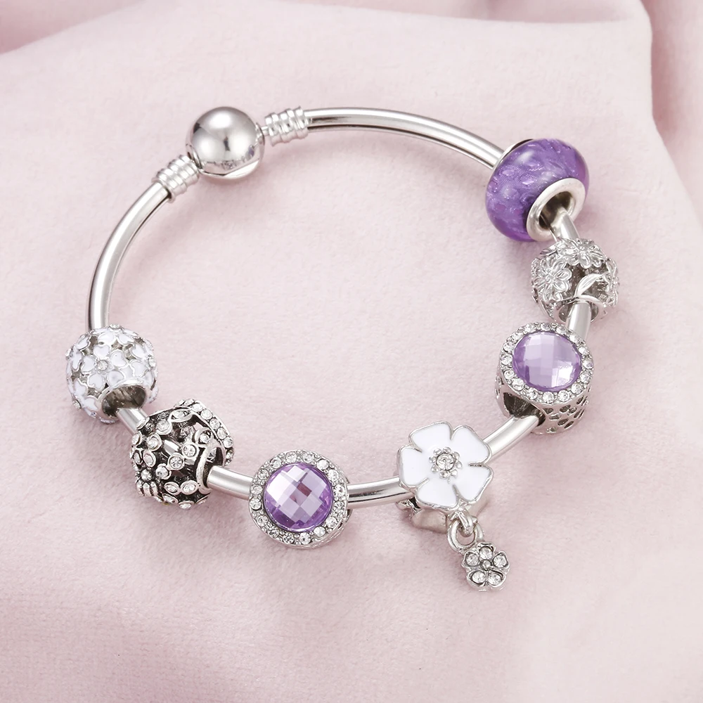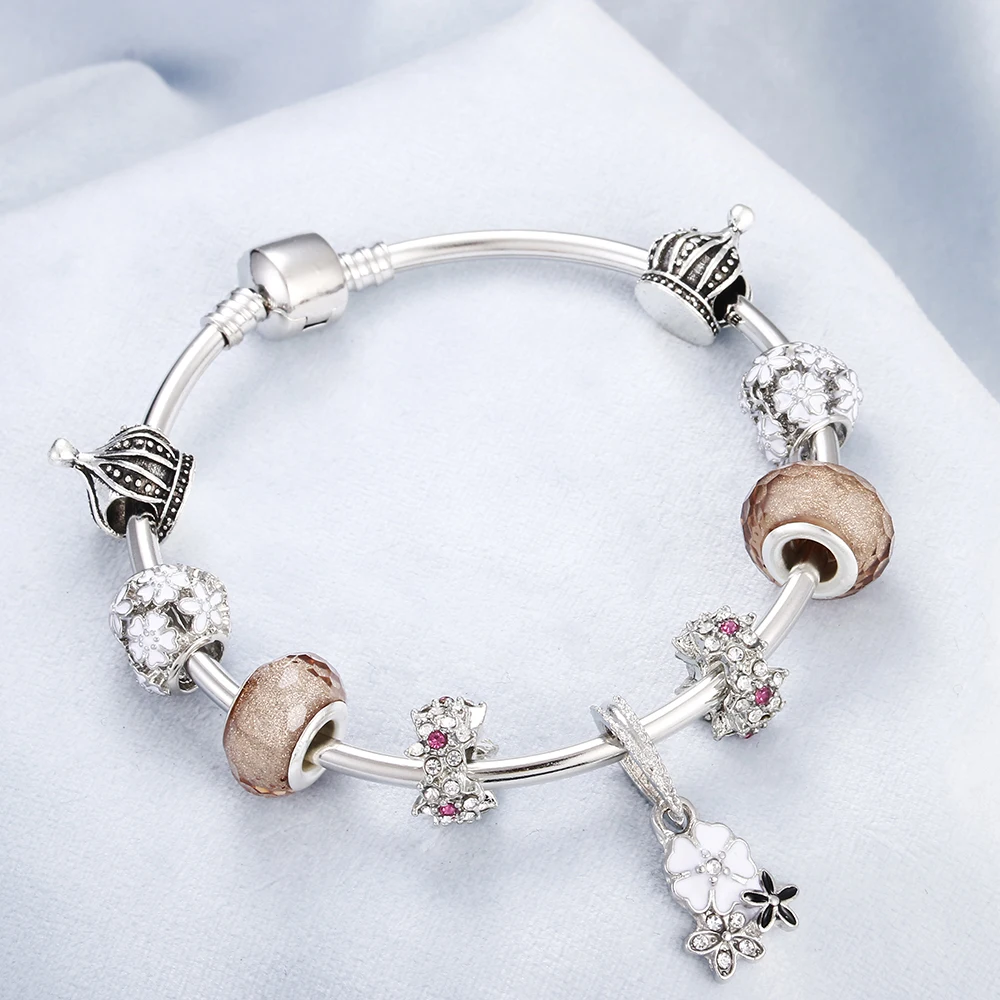 Best Charm Women Fit Silver Bracelet Starfish Flower Pendant Crystal Beads Bracelets Bangle Girl Origina