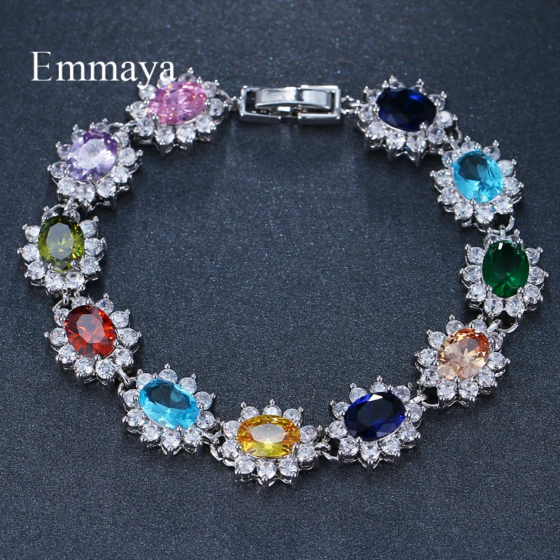 Best Emmaya Hot Bracelet & Bangle for Women Prong Setting 10 Colors Zircon Chain Bracelet Jewelry Gift f