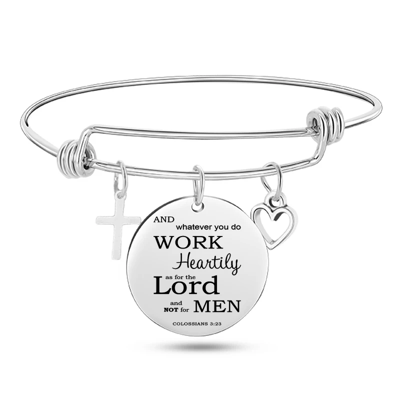 New Fashion Engraved Bible Psalm Stainless Steel Bangle Cross Heart Charms Bracelets Adjustable Bangles