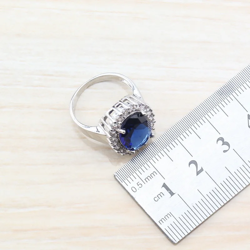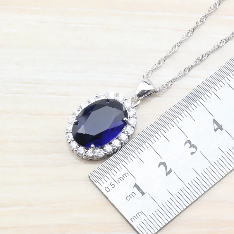 Promo 925 Silver Jewelry Sets Valuable Oval Blue Zircon Women Accessories 3PCS Earrings/Necklace&Pendant/
