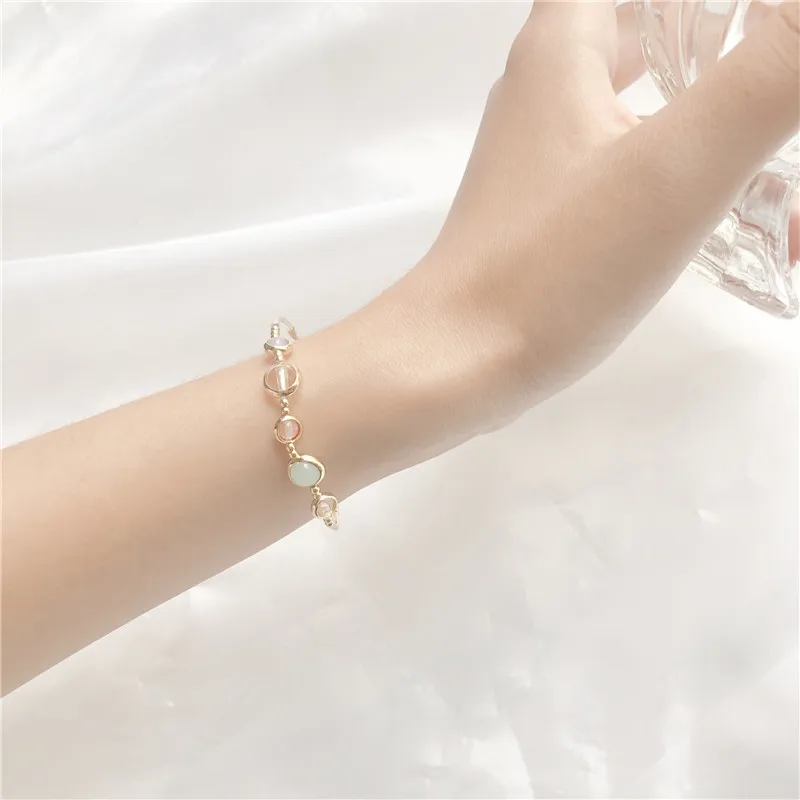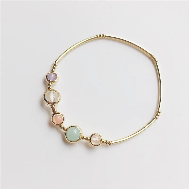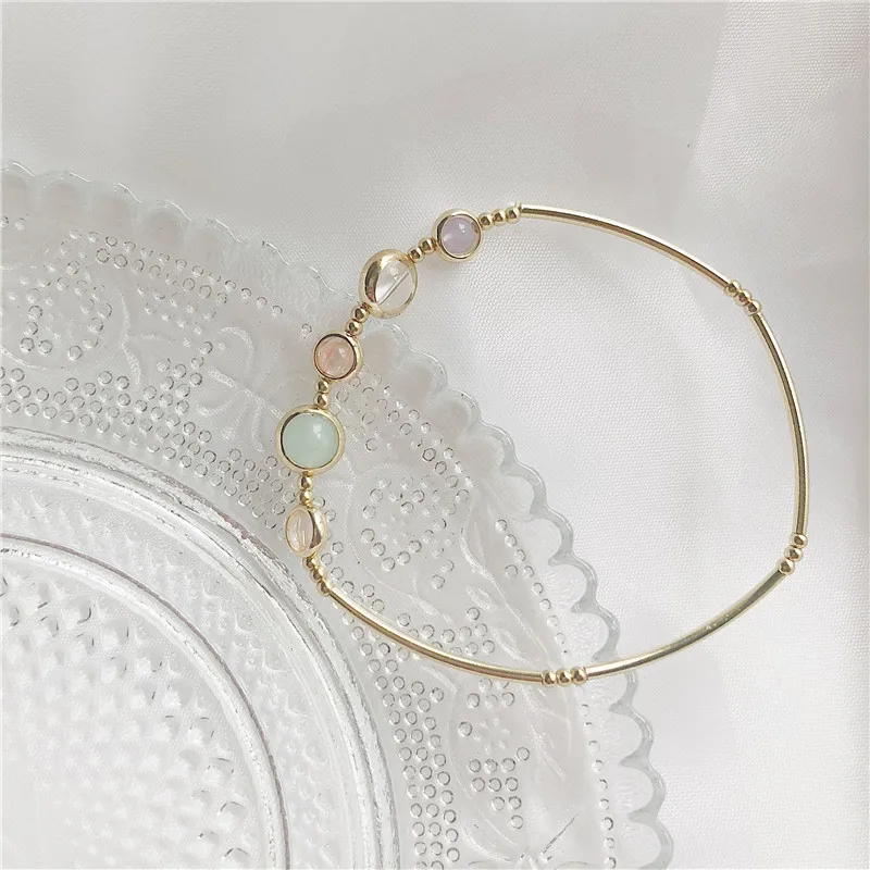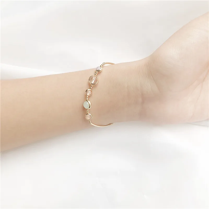Promo Fashion Lucky Stone Beads Bracelet Elastic For Women Girls Simple Style Gold Color Bangles Jewelry