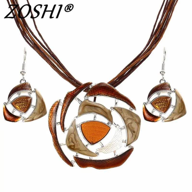 Promo ZOSHI Fashion Crystal Jewelry Sets Leather Rope Chain Pendant Necklace Drop Earrings Wedding Bridal